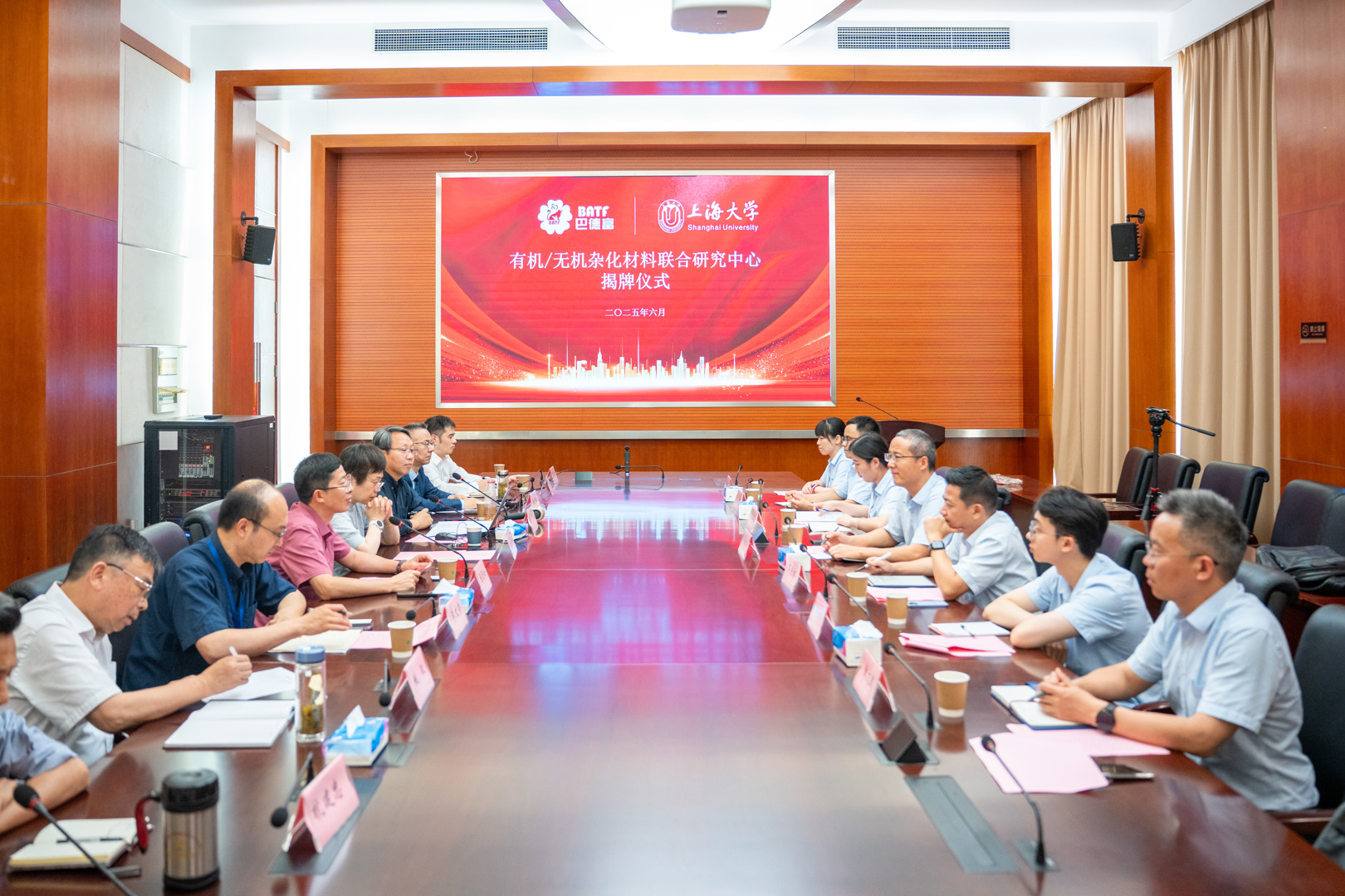 6月23日,巴德富集团与上海大学“有机/无机杂化材料联合研究中心”揭牌仪式暨合作研讨会在上海大学隆重举行。双方就研究方向、合作项目及资源共享机制等进行深入探讨并达成多项共识。