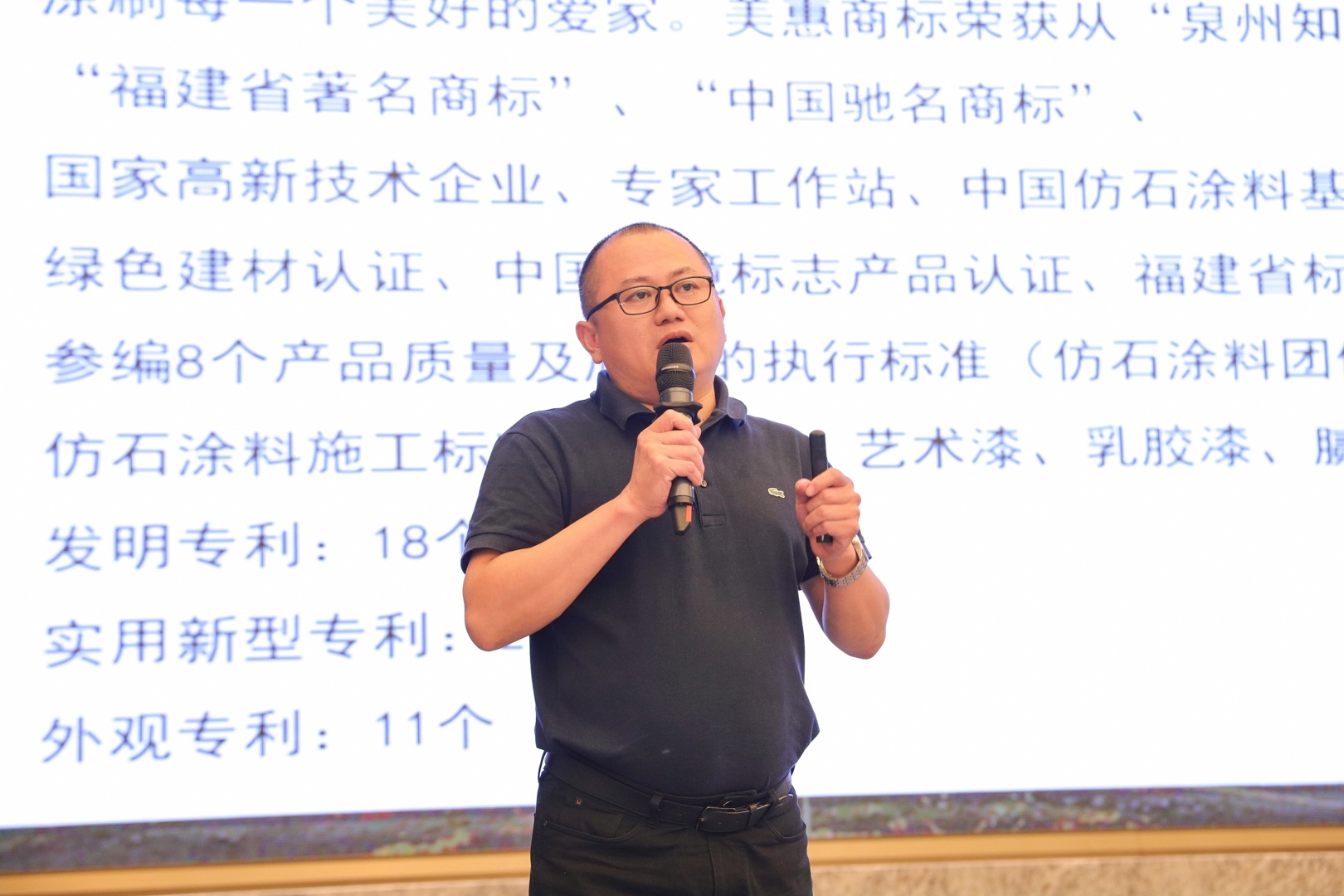 福建美惠石感漆副总经理康惠阳在《福建美惠多彩发展经验分享》中表示,美惠石感漆以“三个客户端”原则严控品质、以创新驱动产品升级,持续满足市场对高端干挂石材涂料的需求,为同行提供了可借鉴的破局样本。