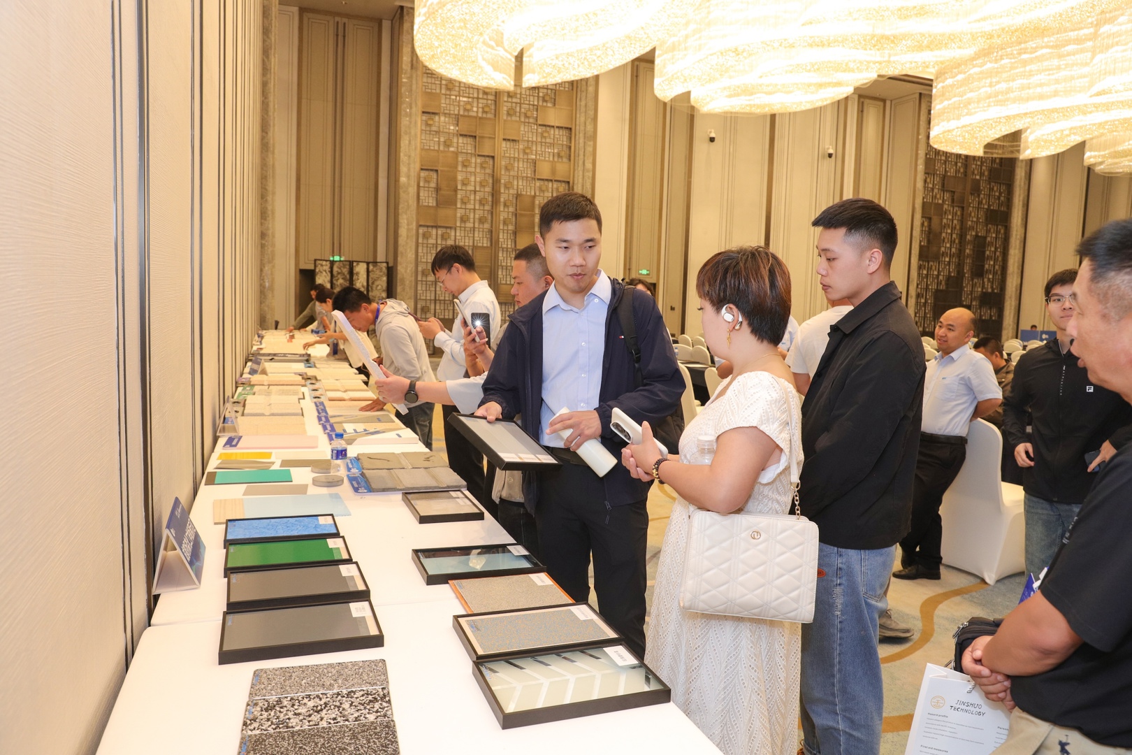 此外,现场还精心布置了“好”样板展览区,集中呈现了巴德富集团各个业务板块的代表性产品样板,吸引了众多与会人员驻足观看,他们仔细端详样板的表面质感,对巴德富集团的产品表现出浓厚的兴趣,不少参会者还就产品性能、应用领域及施工工艺等问题,与现场工作人员进行了深入的交流与咨询。