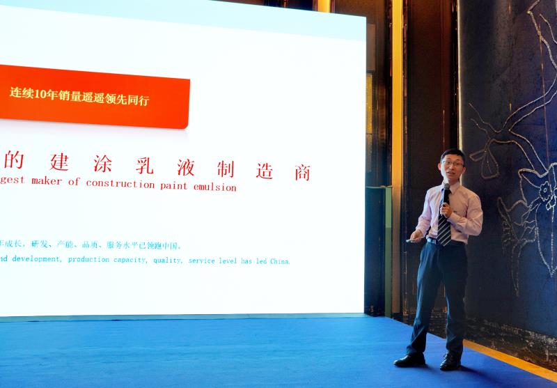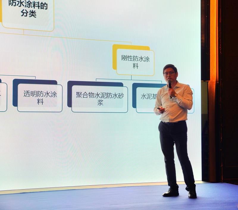 本次会议还邀请了深圳市卓宝科技股份有限公司总工程师谭武先生。从防水涂料行业的现状概况,到防水涂料的趋势和需求探索进行了深入的分析。他指出,防水涂料的快速发展,必定提出更多的防水乳液需求,选择优质的丙烯酸类防水乳液将给防水企业带来更多便利和技术服务的支持,可以快速响应市场需求。
